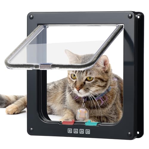 Cat Door, Safety Pet Door with 4 Way Lock, Weatherproof & Easy Installation Cat Flap Door for Interior Exterior Door, Window, Wall (M)
