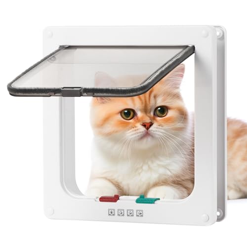 Large Cat Flap, 4 Way Locking with Magnets Cat Flap Door, Easy Install, Weatherproof Pet Door for Cats, Silent Manual Pet Flap for Wall/Wooden Door/Upvc Door(White,L)