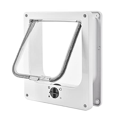 Smandy 4 Way Lockable Cat Flap Door, Pet Flap for Cats & Small Dogs, Size M, White, ABS Material