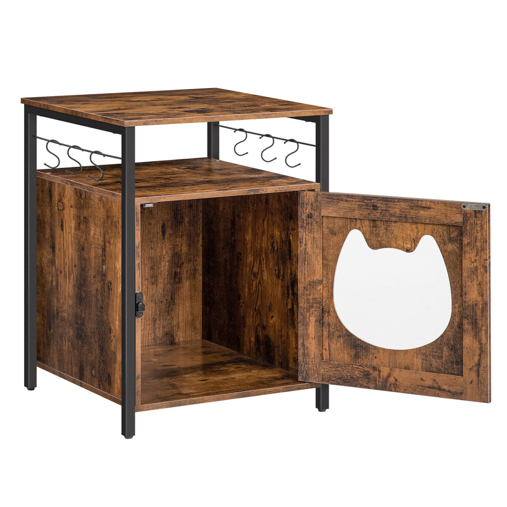 HOOBRO Cat Litter Box Enclosures, Cat Cabinet for Hidden Litter Box Furniture with 6 Hooks, Large Cat House Side Table End Table for Living Room, Dark