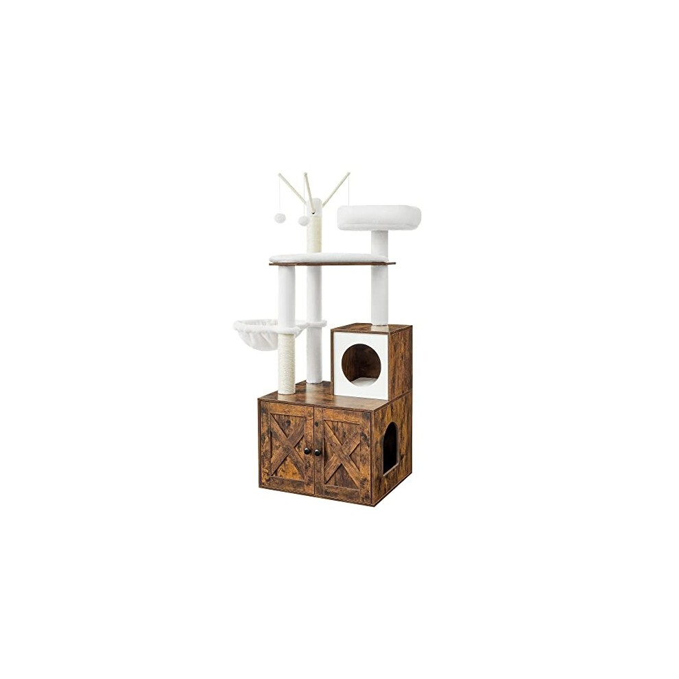 Hzuaneri Cat Litter Box Enclosure, Hidden Litter Box Cabinet Furniture with Cat Bell, Indoor Cats House, Farmhouse Style, 80 x 50 x 53 cm, for Hallway, Bedroom, Rustic Brown and White CB82414X