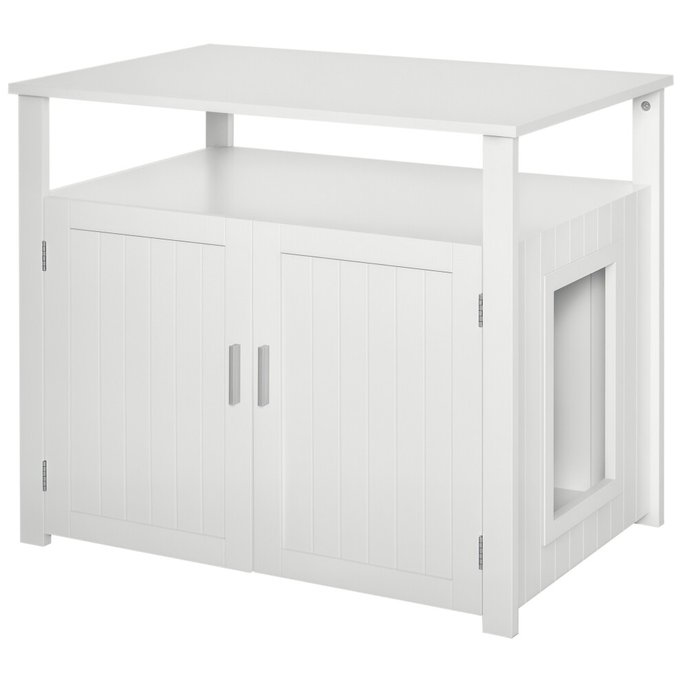 PawHut Wood Cat Litter Box Enclosure Furniture w/ Adjustable Interior Wall White