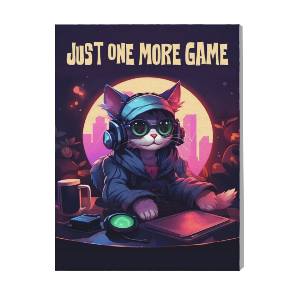 (Cat Gaming With Headset=7175) Canvas Print Framed DIY Install Kit- 16x20" Gamer Wall Art Home Decor Gaming Aesthetic Poster for Office Bedroom Living