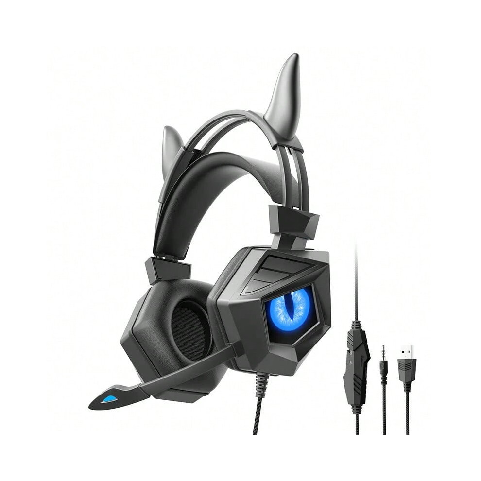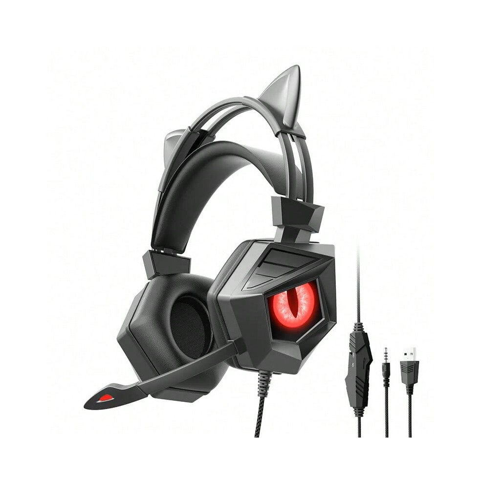 (Version 1) E-sport Wired Headphone Cool Eagle Eye Design LED Breathing Light Headset For PS4 PS5 Xbox PC With HD Mic Cat Ear Gaming Headset