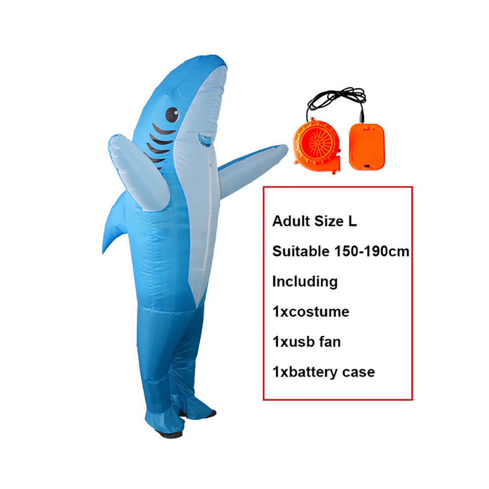 (Blue Shark) Cute Hello Cat Halloween Costumes for Women Adult Children Birthday Party Full Body Cosplay Inflatable Costume