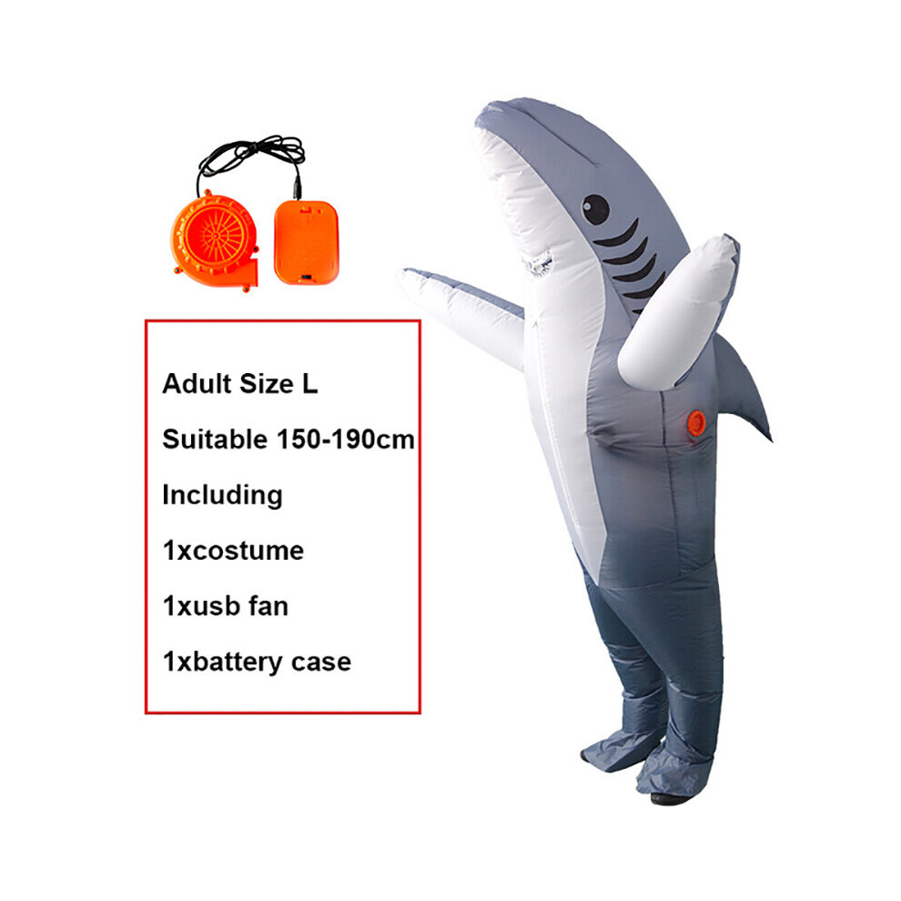 (Gray Shark) Cute Hello Cat Halloween Costumes for Women Adult Children Birthday Party Full Body Cosplay Inflatable Costume