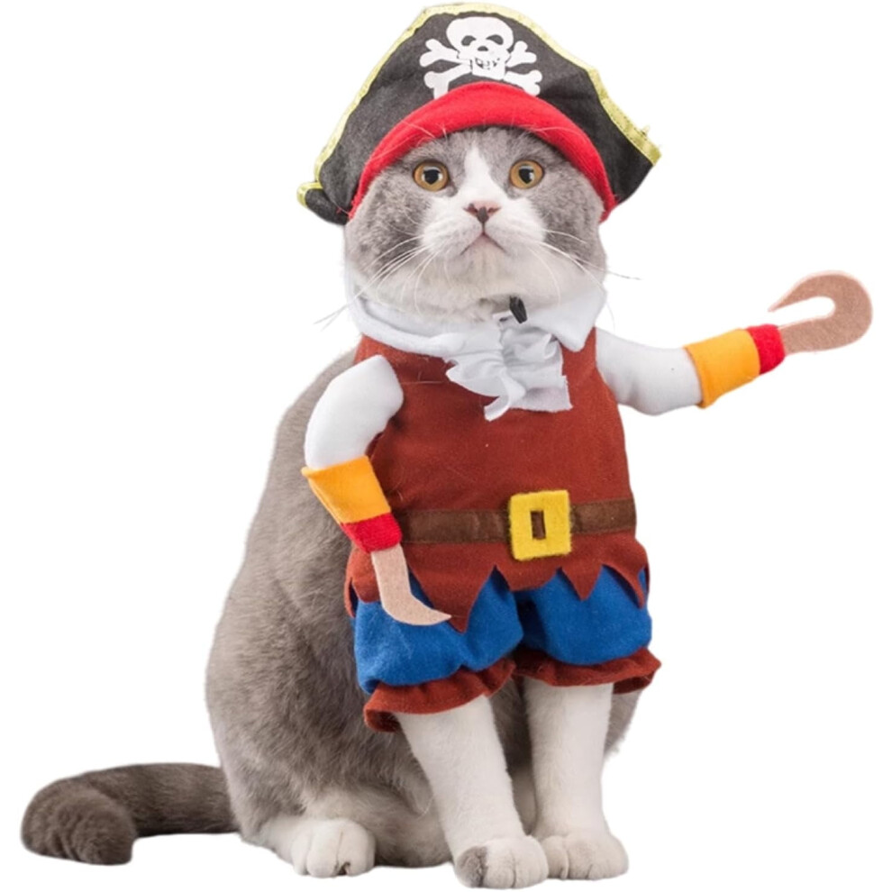 Dog Costume Pirates of The Caribbean Style Cat Costumes Halloween Dog Clothes with Hat Small Medium Pet Kitty Cosplay Outfits Cute Prop Apparel