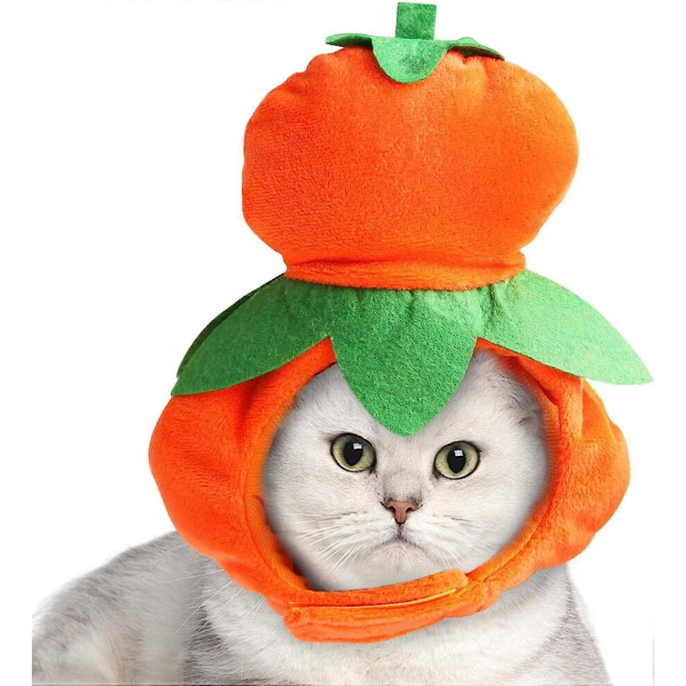 8 Pcs Cat Costumes: Halloween Pumpkin Pet Hat With Touch Fastener