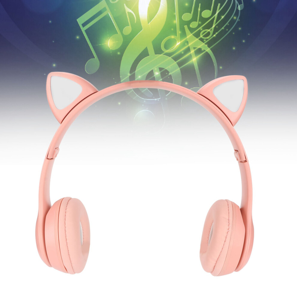 Wireless Headset Cute Cat Shape HiFi Sound Quality Luminous Stereo Bluetooth Headphones for Home School Office Pink