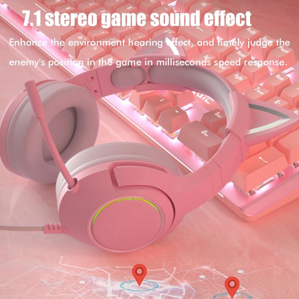 Pink Cat Ear Gaming Headphones Deep Bass LED Light Foldable Cute Cat Ear He TU