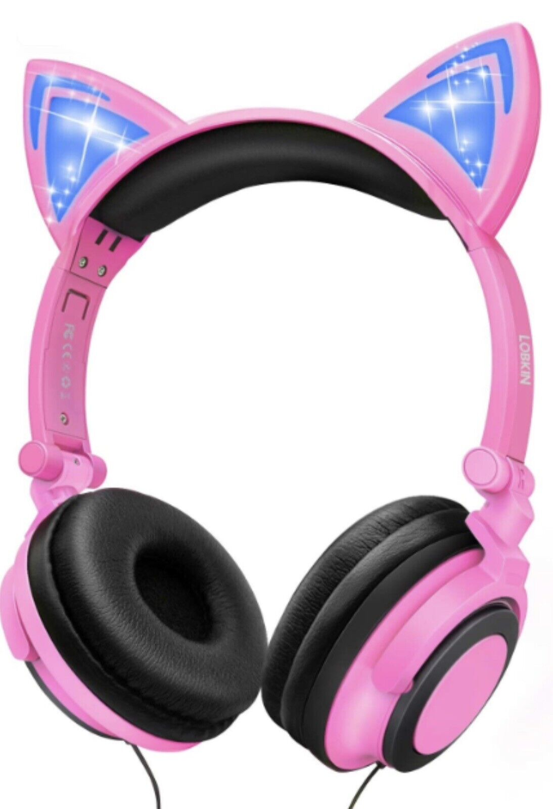 Kids Headphones-LED Cat Ears, LOBKIN Volume Limiting Headphones,Wired, Foldable