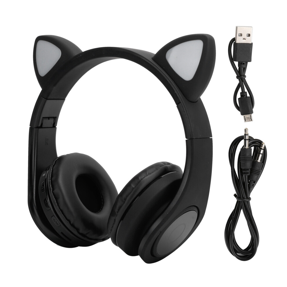 Cute Cat Ear Bluetooth Compatible Headphone Pink LED Wireless Headphones For Children Microphone Foldable Stereo