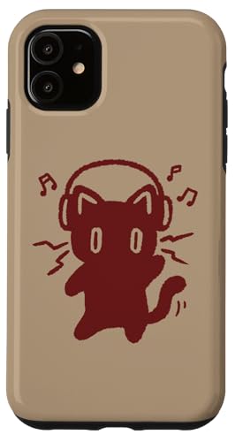 Y2K 90s Funny Dancing Cat Tomcat with Headset Headphone Case for iPhone 11