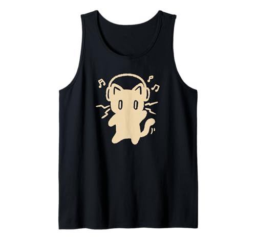 Y2K 90s Funny Dancing Cat Tomcat with Headset Headphone Tank Top
