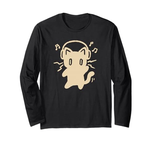 Y2K 90s Funny Dancing Cat Tomcat with Headset Headphone Long Sleeve T-Shirt
