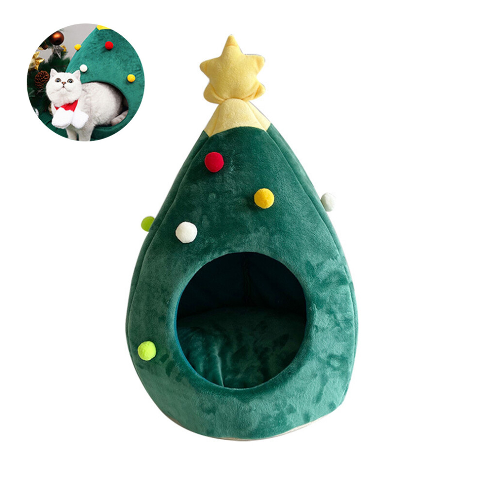 Foldable Comfortable Triangle Cat Bed, Christmas Tree Design, Portable Indoor Cat Igloo, Non-Skid Bottom, Machine Washable Pet Bed for Cats and Small