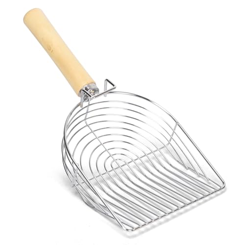 Nobleza Metal Cat Litter Scoop Non Stick Litter Scooper Fast Sifter with Wooden Handle Deep Shovel Pet Easy Cleaning Tool, Suitable for Clumping Litter, Silver Color.