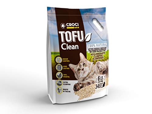Croci Tofu Clean Litter 6L - Clumping Cat Litter, Biodegradable, flushes down the toilet, 100% vegetable, Long lasting Anti-odor Sand
