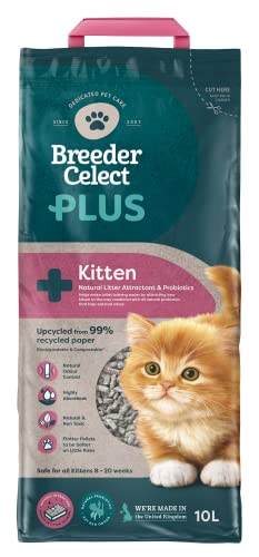 Breeder Celect Plus Kitten Cat Litter (10L) - 99 Percent Recycled Paper, Absorbent Cat Litter, Natural Probiotics & Attractant, Optimal Odor Control, Non-Clumping, Biodegradable - Made in UK