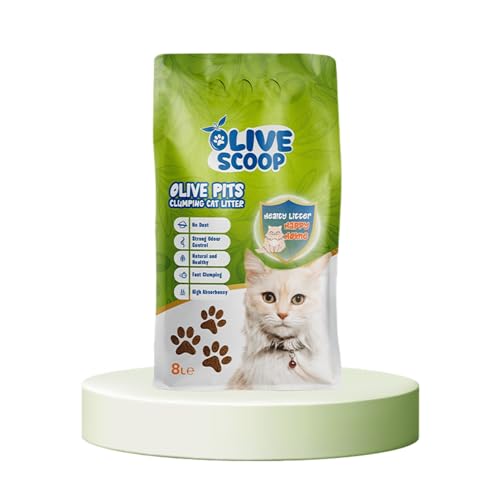 OLIVE SCOOP Natural Clumping Cat Litter, 8L - Olive Pits, Biodegradable, Dust-Free, Eco-Friendly, Unscented, Hypoallergenic, Odour Control, Safe for Kittens & Adult Cats
