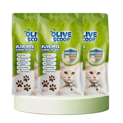 OLIVE SCOOP 100% Natural Dust-Free Clumping Cat Litter – Natural Olive Pits, Unscented, Biodegradable, Low Tracking, Odor Control, Safe for Kittens & Multi-Cat Homes - 24L (8Lx3Pack)