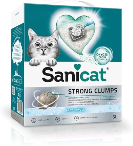 Sanicat - Ultra-clumping cat litter with the scent of baby powder | | Instant compact clumps | Neutralises odours and does not produce dust | 6 L capacity