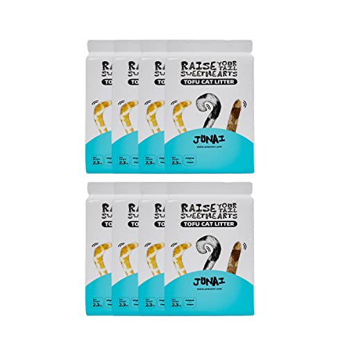 JUNAI Tofu Cat Litter 8 Packs(2.3kg x 8), 48L Original Clumping Cat Litter Pellet Natural Vegan Kitty Litter, Lightweight and Dust Free cat Litter for Multiple Cats, Flushable and Biodegradable