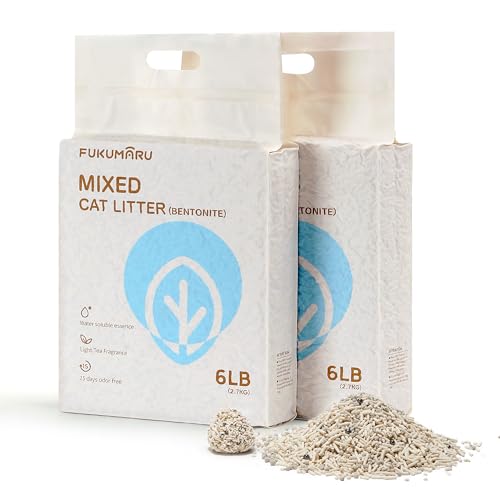FUKUMARU Mixed Tofu Cat Litter, Strong Clumping Cat Litters, Effective Oder Control, Dust Free and Ultra Absorbent Flushable Bentonite White Tea Cat Litter, Direct to Toliet, 5.4Kg(2 Packs)