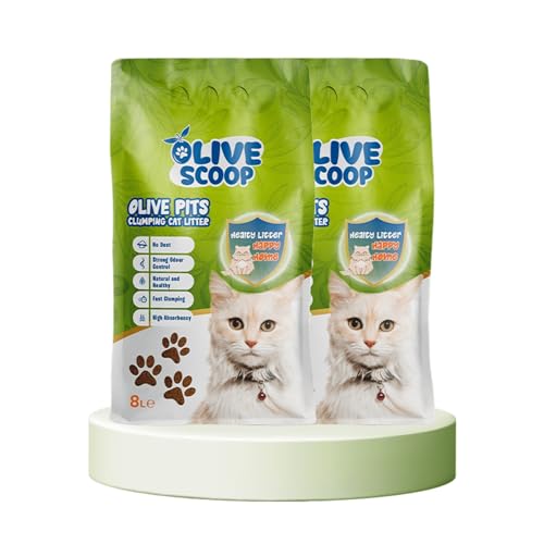 Olive Scoop Natural Cat litter Clumping | Made From 100% Olive Pits | Dust Free Cat Litter | Kitten Litter | Ultra Clumping Cat Litter Odour Control - 16L (2x 8L pack)