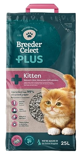 Breeder Celect Plus Kitten Cat Litter (25L) - 99 Percent Recycled Paper, Absorbent Cat Litter, Natural Probiotics & Attractant, Optimal Odor Control, Non-Clumping, Biodegradable - Made in UK