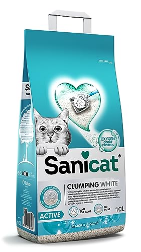 Sanicat - White Ultra-Clumping Cat Litter - Marseille Soap Scented | Made from natural minerals with guaranteed odor control | Absorbs moisture and forms clumps for easy cleaning | 10 L capacity.
