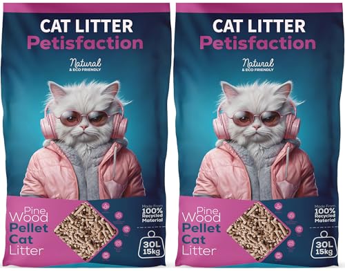 Petisfaction 2X30L Premium Wood Pellets Cat Litter, Odour Control Cat Litter Wooden Pellets, Non Clumping, Highly Absorbent, Biodegradable, Pine Wood Cat Litter (60L - Double Pack)