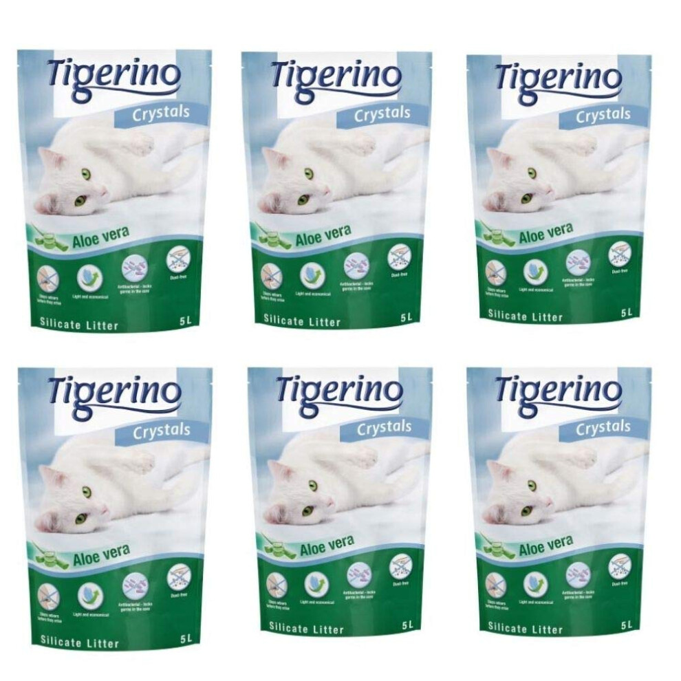 Tigerino Crystals Aloe Vera Cat Litter, Dust-Free-6 X 5L , Very Absorbent, Non-Clumping Litter With A Pleasant Natural Aloe Vera Fragrance, Efficient Silicate Cat Litter, Ultra Anti-bacterial Crystals
