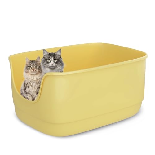 Suhaco High Sided Jumbo Cat Litter Tray Anti Splash Open Top Cat Litter Box 61 x 48 x 31 cm Extra Deep Large Cats Litter Trays for Multi Cats Toilet Low Entry (Yellow)