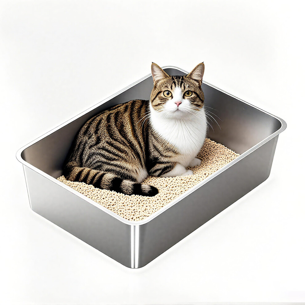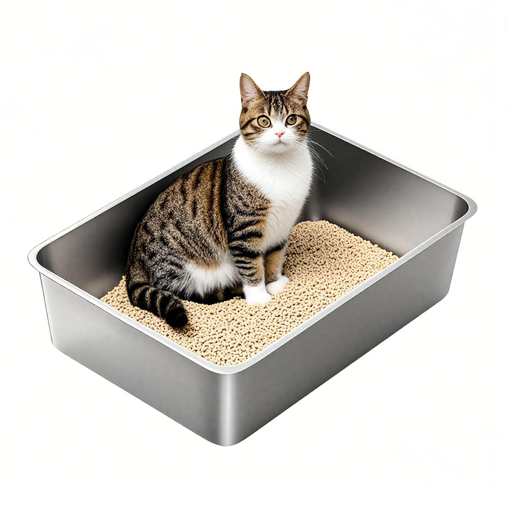 Vivifying Stainless Steel Cat Litter Tray with Lid, Easy to Clean and Odour-Resistant Stainless Steel Litter Tray, Leak-Proof Cat Litter Trays with