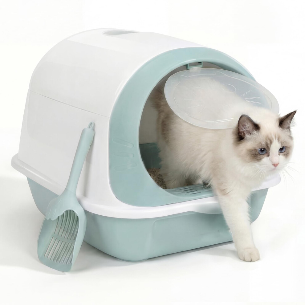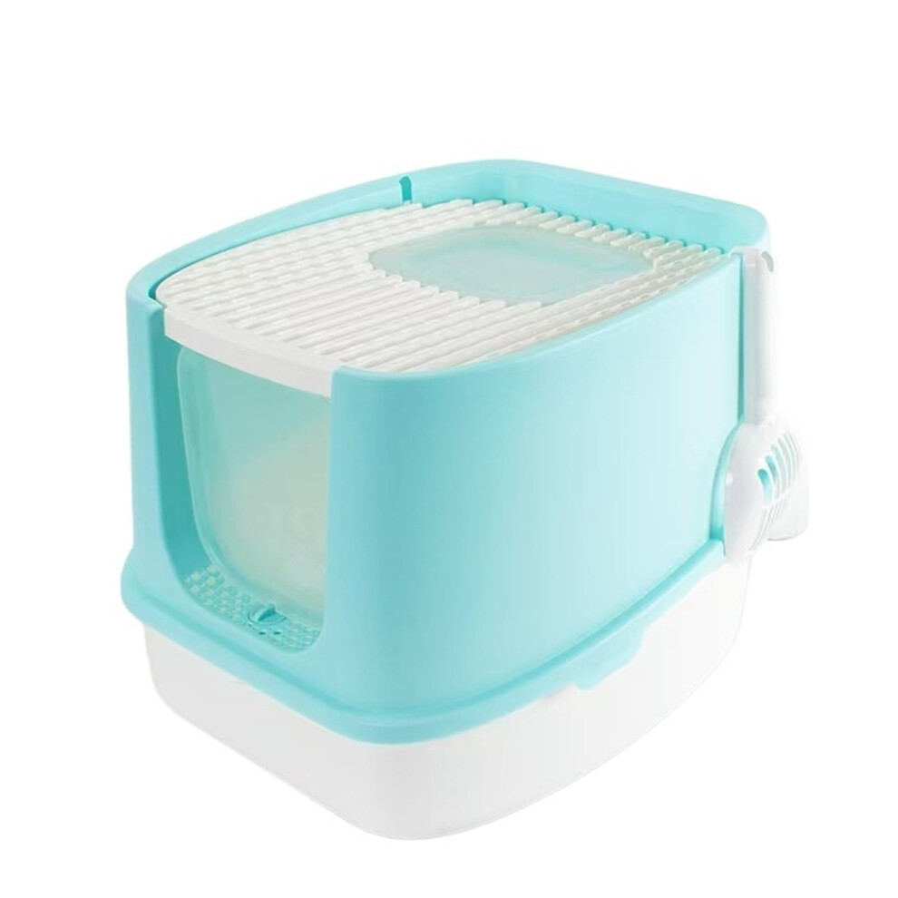 Large Cat Litter Tray with Lid - Turquoise Deodorant Anti-Belt Potty Basin for Large Cats, Easy Clean Design
