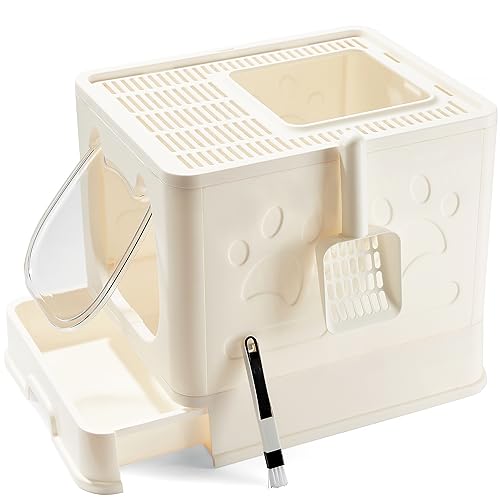 Large Cat Litter Box, Hooded Cat Litter Tray with Scoop