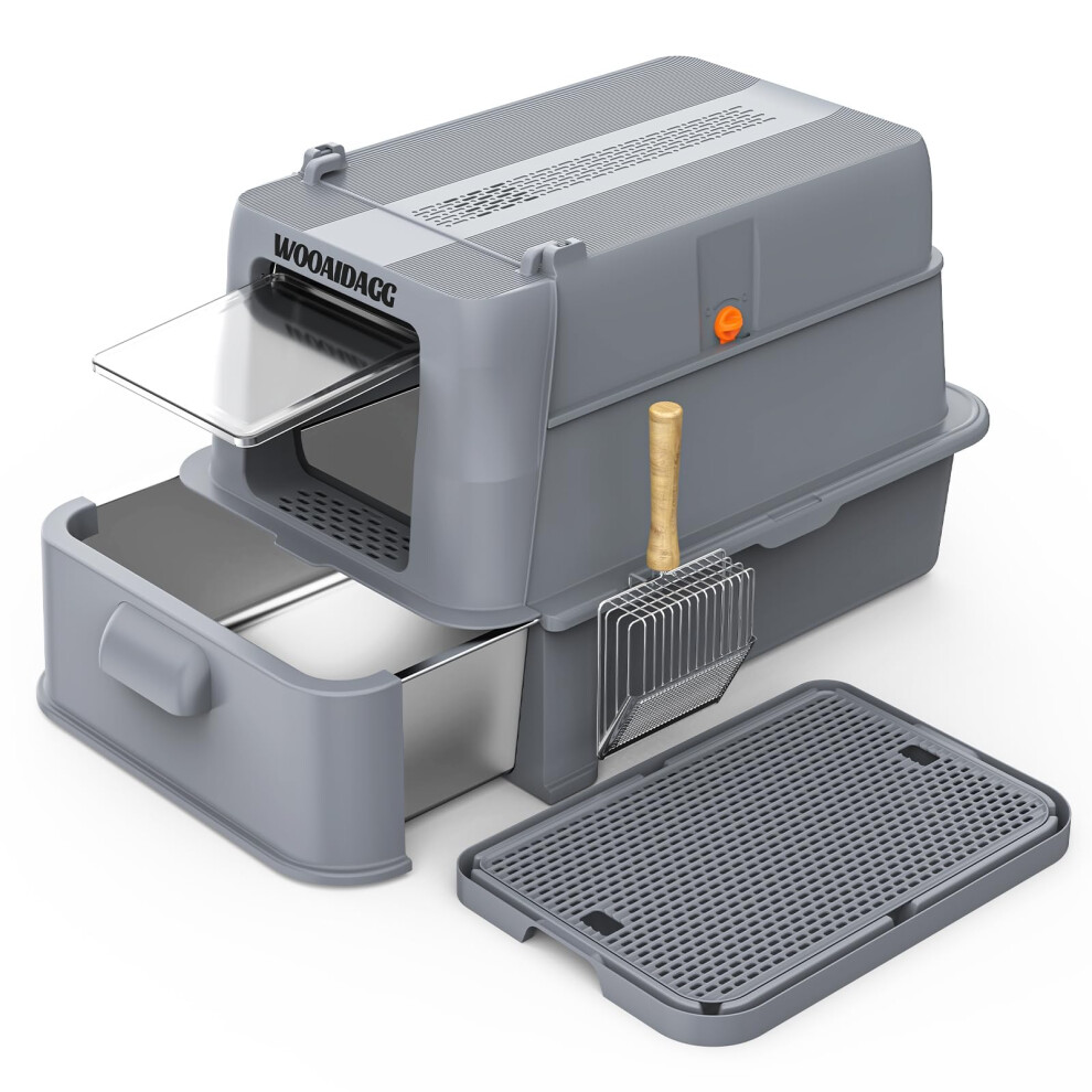 Wooaidagg Stainless Steel Cat Litter Tray with Lid, Large Covered Meta