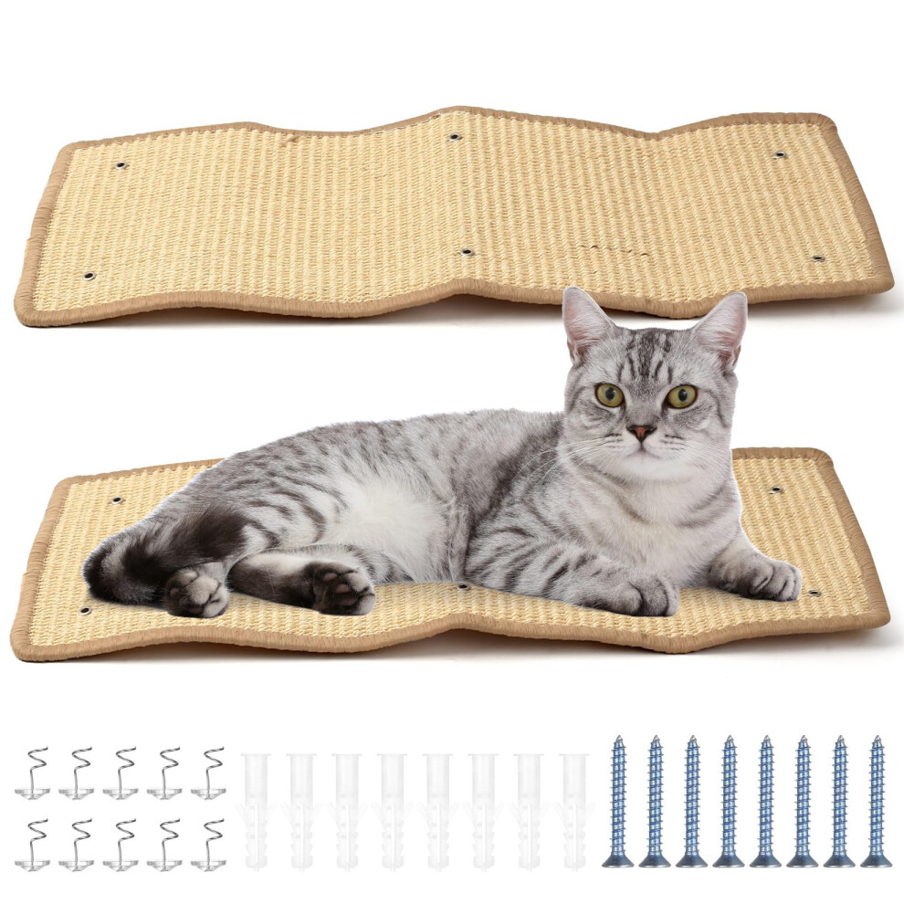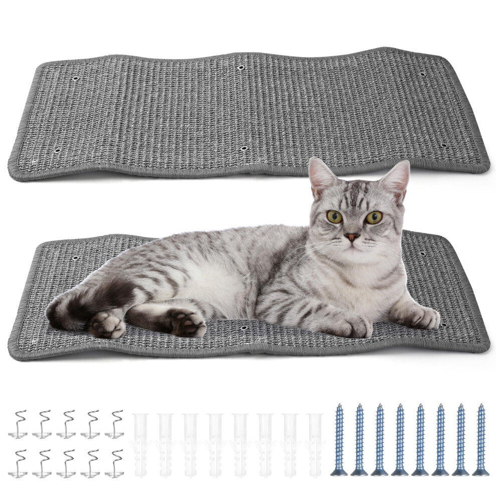 MIAOGE? 2PCS 21.7''x11'' Cat Scratch Mat Wall Mounted Scratching Pads, Cat Scratch Rug, Sisal Floor Scratcher Scratchboard (Grey)