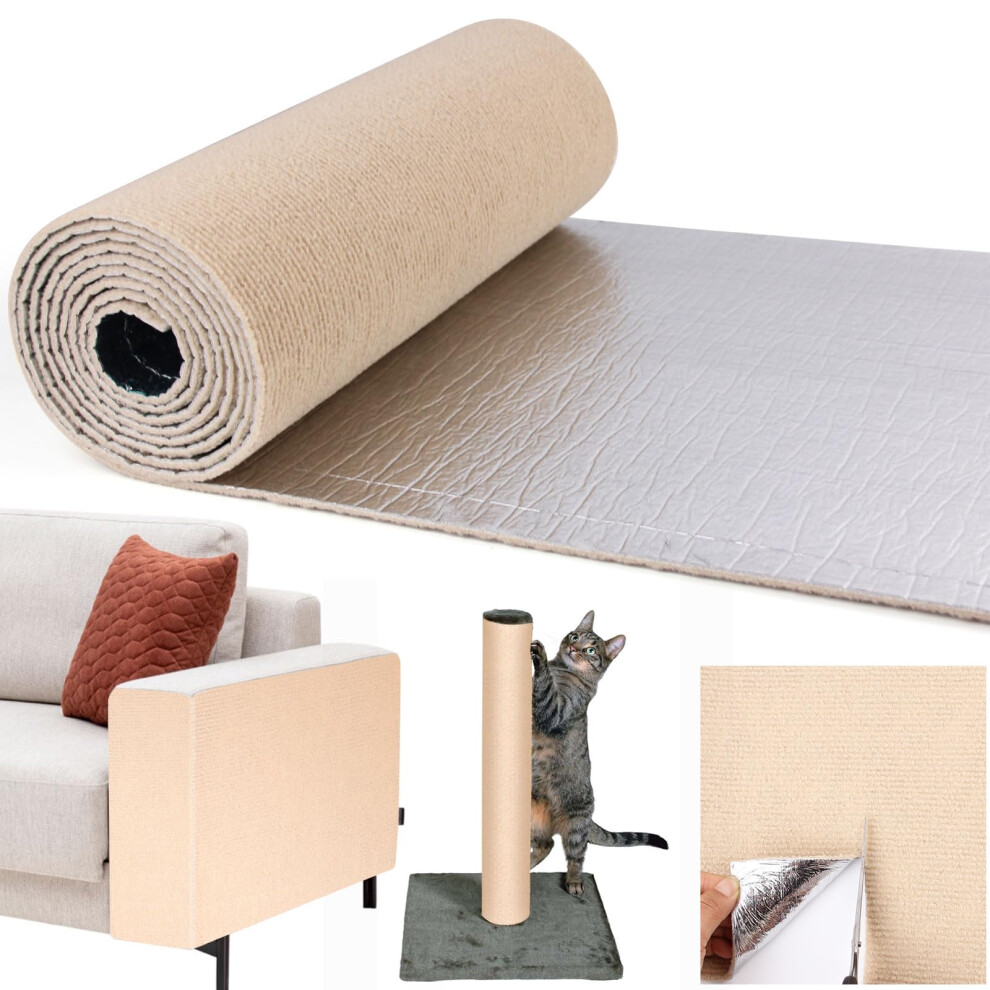 Adhesive Cat Scratcher Mat, Cat Scratching Post Diy Climbing Carpet, Trimmable Cat Scratch Furniture Protector Pad for Wall Couch (Khaki, 40x100cm)