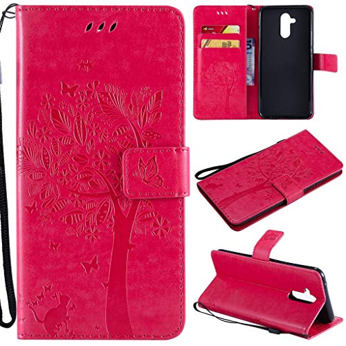 SATURCASE Case for Huawei Mate 20 Lite, Cat Tree PU Leather Flip Magnet Wallet Stand Card Slots Protective Cover with Hand Strap for Huawei Mate 20 Lite (Red)