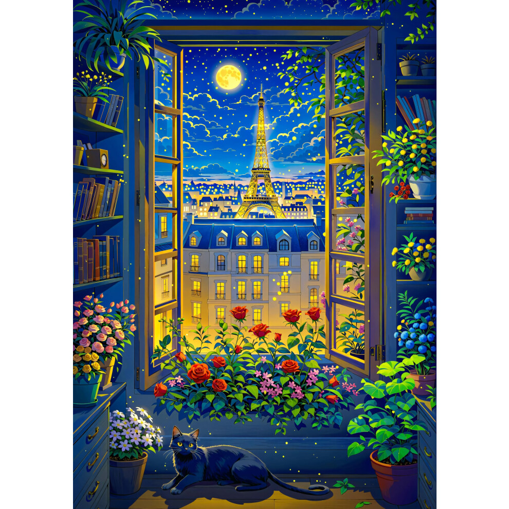 Cat in Paris. TUMBAUMBA Jigsaw Puzzle 1000 Piece for Adults Colorful Challenging Art Puzzle for Woman and Cat Lovers Mate Finish Puzzles for Adults