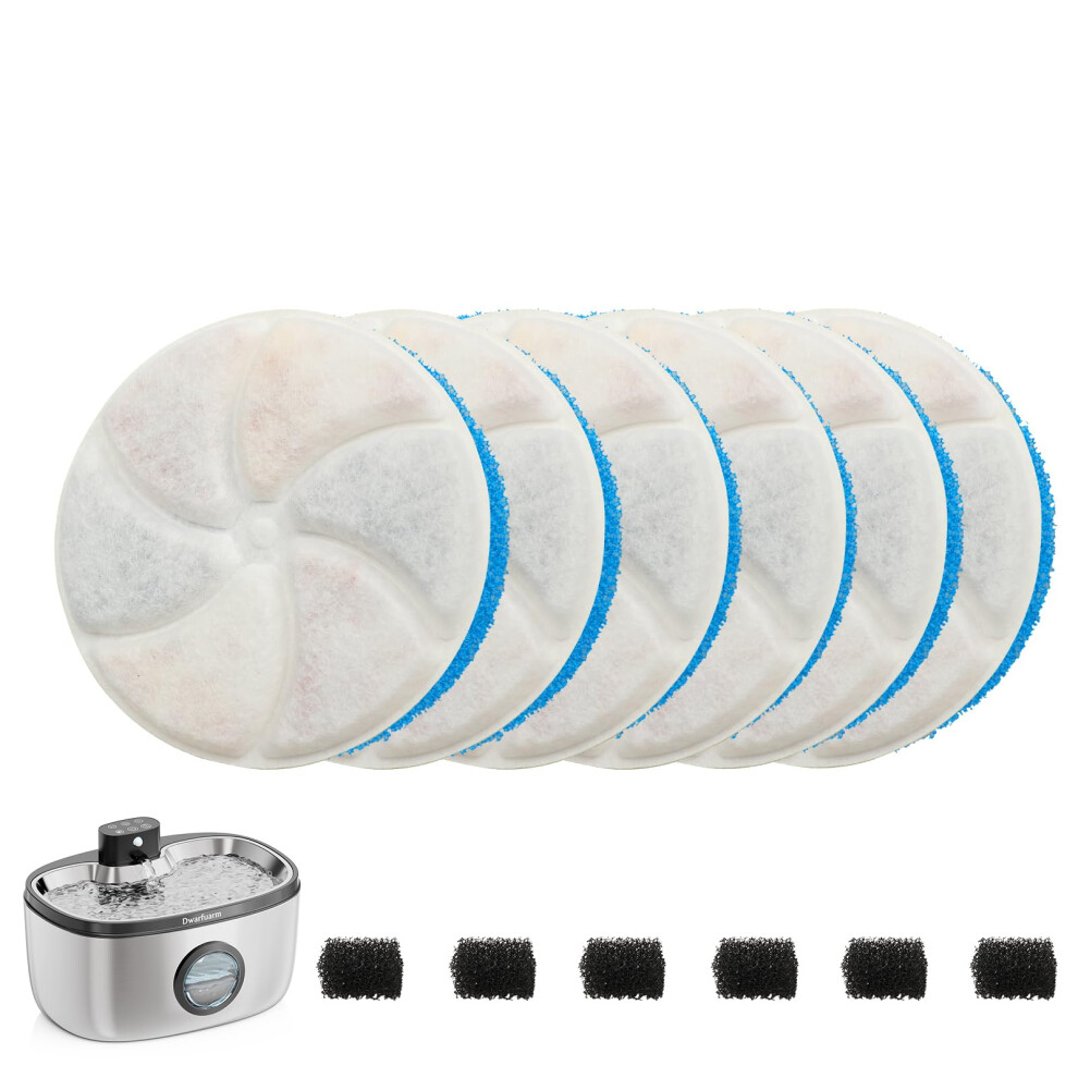 6Pcs Cat Water Fountain Filters, Cat Mate Filters, 6Pcs Activated Carbon Filter and 6Pcs Foam Filter, Pet Water Fountain Filters Replacement for