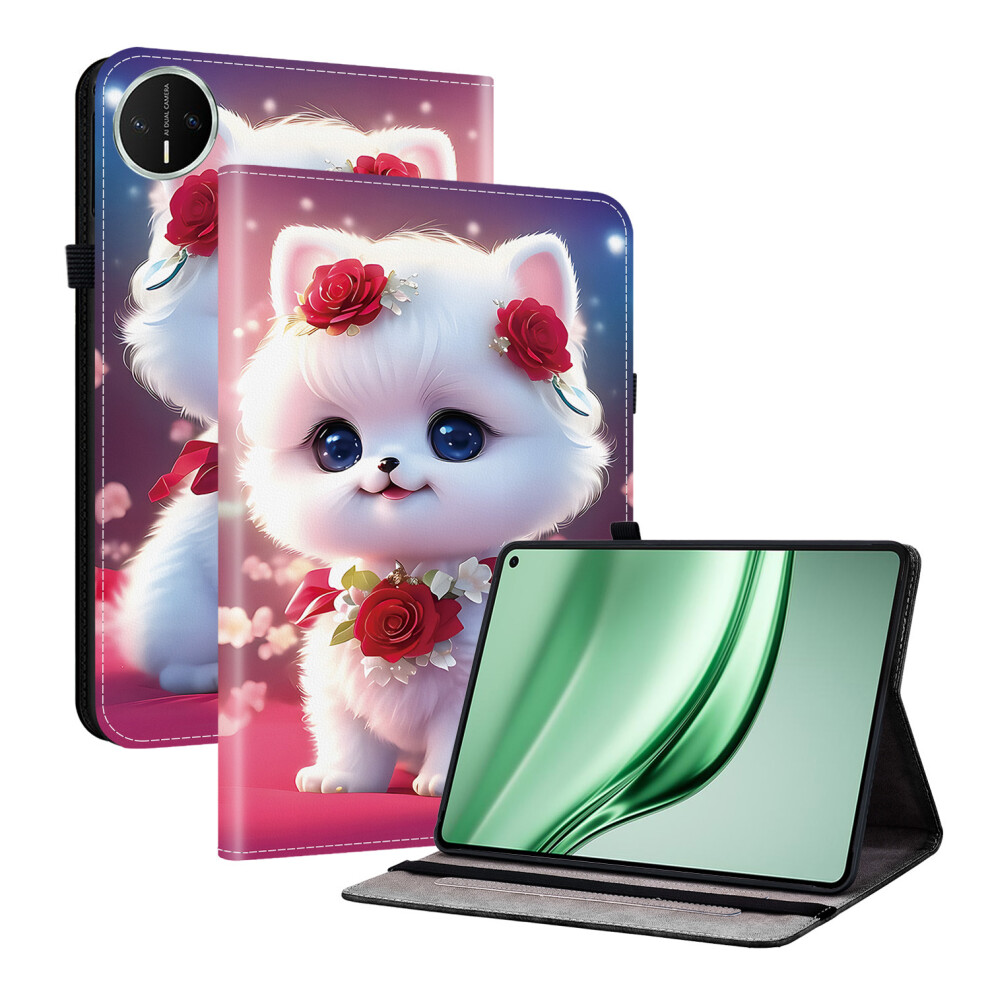 (Rose Cat) For Huawei MatePad Mini Leather Case Pattern Printed Stand Tablet Cover with Card Slots