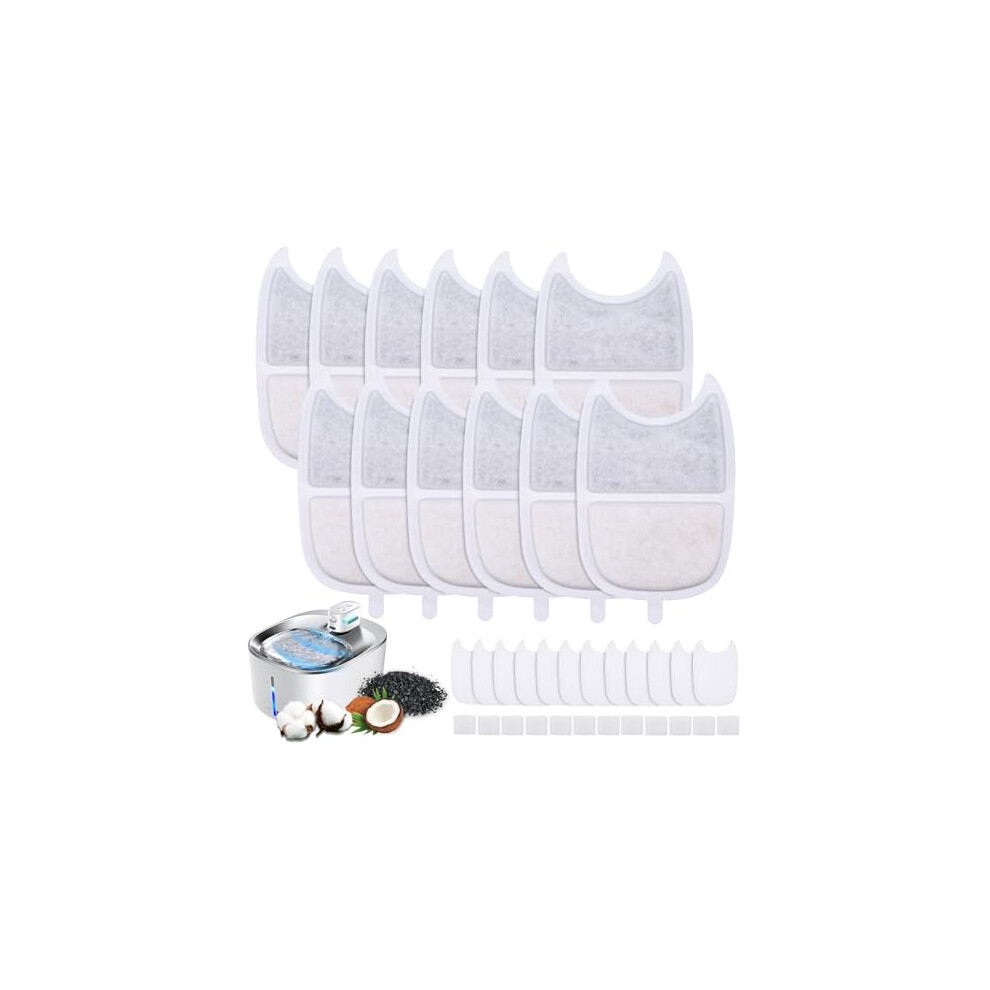 12Pcs Cat Water Fountain Filters, Cat Fountain Filters Set, 12Pcs Activated Carbon Filter and 24Pcs Foam Filter, Cat Mate Filters, Pet Water Fountain