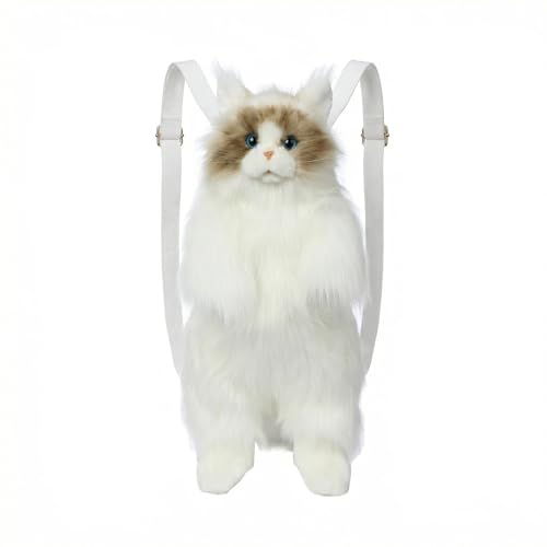CU-MATE Plush Cat Backpack, Lifelike White Stuffed Animal Bag, Large Handmade Cute Cat Shaped Bag