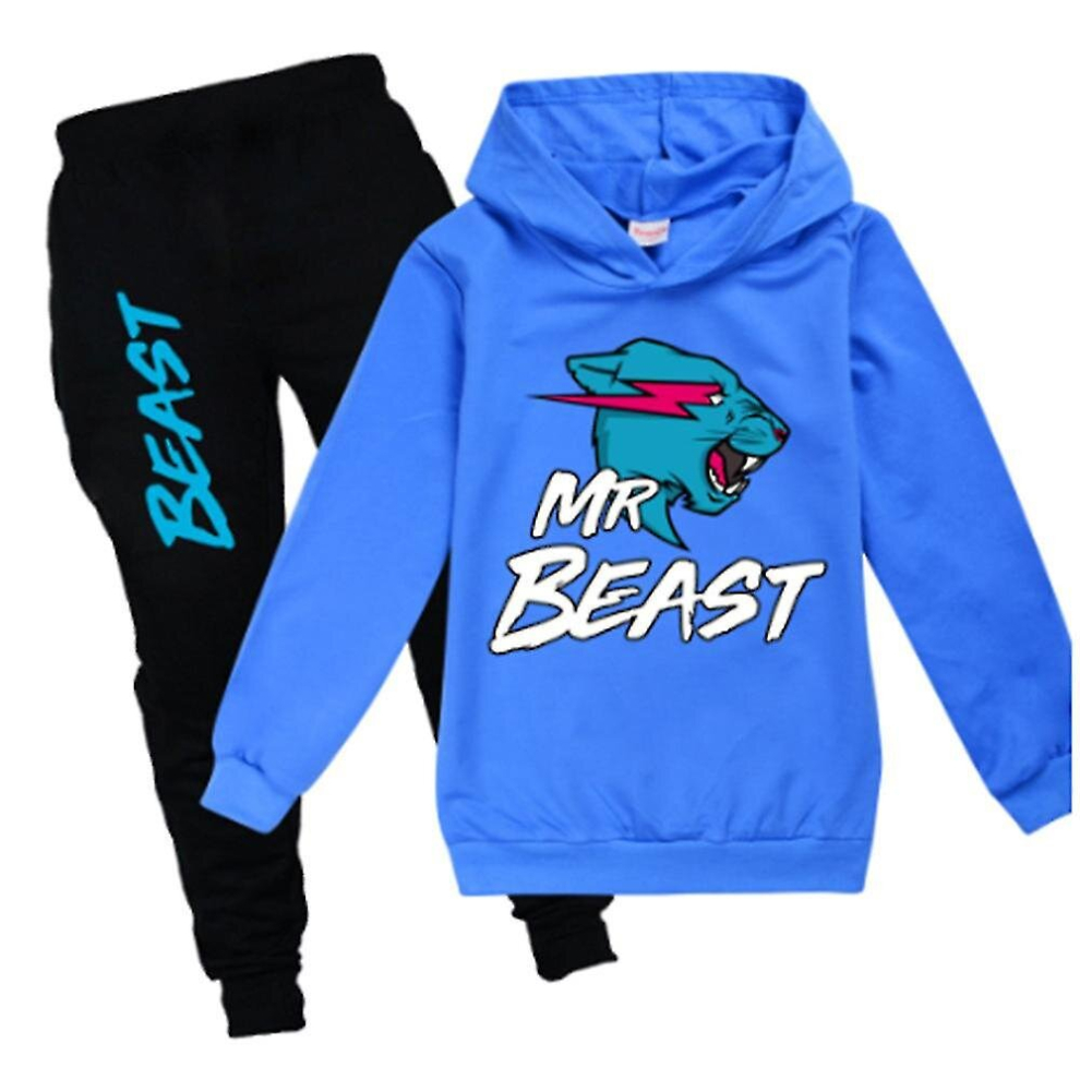 (Dark Blue, 9-10 Years) Otwoo Otwoo Kids Boys Girls Mr Beast Lightning Cat Print Outfits Casual Hoodies Tops Jogger Pants Tracksuit Set 7-14 Years