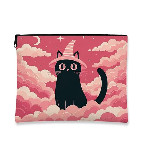 Fanciful Cat Makeup Bag, Peach Cat Witchy Cosmetic Travel Pouch for Women, Portable Small Canvas Zipper Organizer, Halloween Toiletry Bag, Magical Style, Peach, 7x9 Inch, Cat