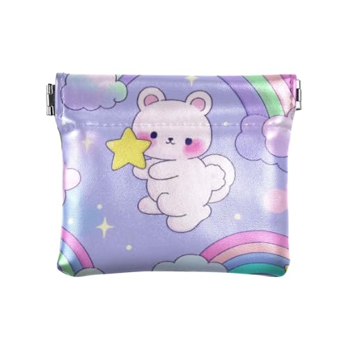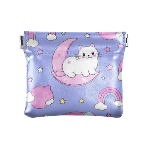 Cute Cartoon Cat Star Purple Peach Fashion Women's Small Leather Coin Purse Unique Coin Holder for Women monedero para cambio