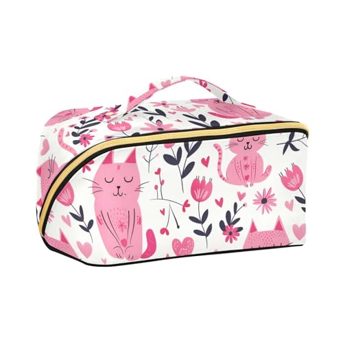 EtherSpher Cute Peach Cat Flower Designed Makeup Bag with dividers Large Large Make Up Bag with Compartments & Handle